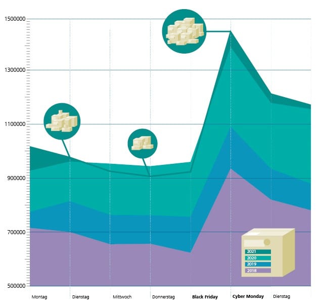 Neue Rekordmengen an Paketen verarbeitet: die Black-Friday-Woche und die Tage danach im Verlauf