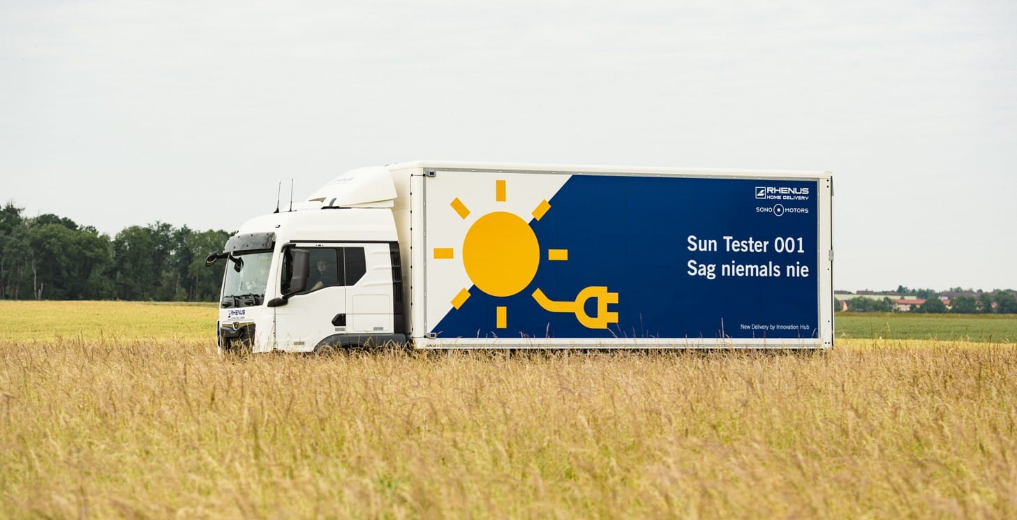 Von der prallen Sonne im Hochsommer bis zu regnerischen Wintertagen: Um realistische Mittelwerte zu erhalten, hat Rhenus den Test als Langzeitprojekt über vier Jahreszeiten hinweg konzipiert. Beleuchtungsstärkesensoren auf beiden Seiten und auf dem Dach des noch herkömmlich angetriebenen 15-Tonners messen kontinuierlich die Sonneneinstrahlungsintensität. Ein per LTE angebundener Data Logger übermittelt zudem die genaue Uhrzeit der Messung an Sono Motors, wo alle Messdaten zu konkreten Ergebnissen verknüpft werden. Vom brandenburgischen Hoppegarten nahe Berlin aus, ist das Fahrzeug in der Testphase in Berlin, Brandenburg und Mecklenburg-Vorpommern unterwegs. Jonas von Frieling, Head of Innovation Hub der Geschäftszweige Rhenus Home Delivery und Rhenus High Tech, erklärt: „Als zwei Unternehmen voller Innovationskraft und Tatendrang passen Rhenus und Sono Motors für so ein zukunftsweisendes Projekt perfekt zueinander.“