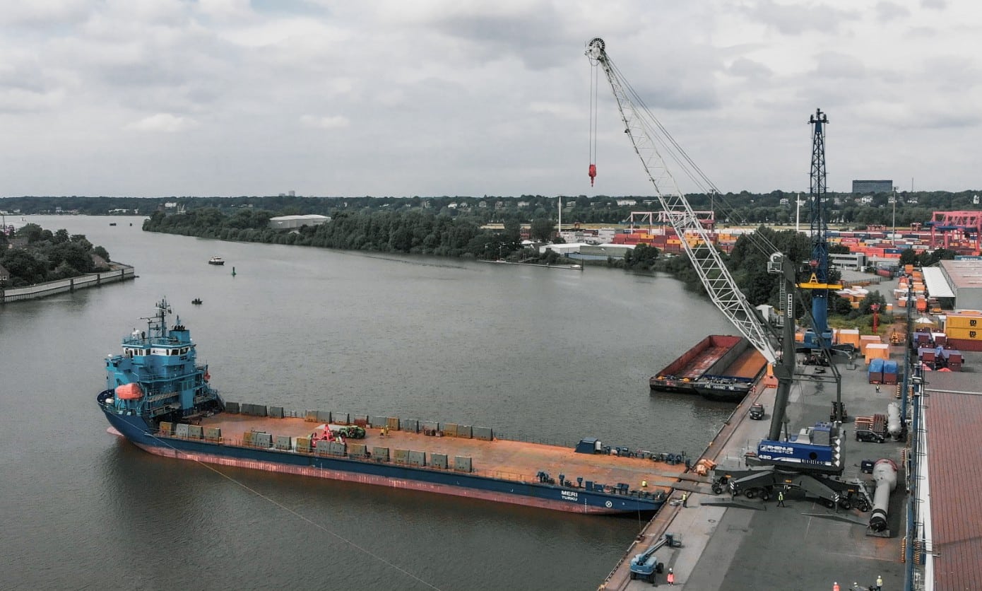 Der LHM 420 wurde im vollaufgebauten Zustand von Rostock nach Hamburg geliefert. Nach einer etwa 10-stündigen Seereise mit dem Open Deck Carrier „Aura“ war die neue Maschine bereits kurze Zeit nach Ankunft einsatzbereit. Die neue Maschine hat eine maximale Hubkapazität von bis zu 124 Tonnen und einen 48 Meter langen Ausleger für beste Reichweite.