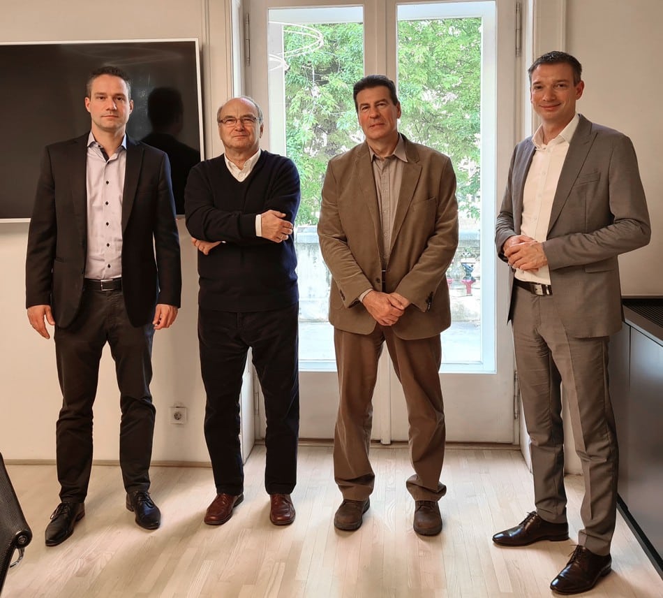 Foto: © Rhenus / Bildlegende: / Rhenus Office Systems übernimmt Eurodoc 2000. (Von links nach rechts): Tamas Pankotai, Dr. Ferenc Csillagh, Zoltán Ács und Gerrit Merten