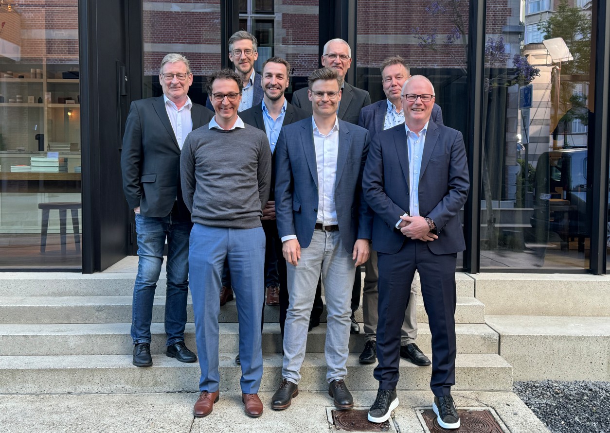 Foto: © Rhenus / Bildlegende: (v.l.n.r.) Thomas Maaßen (Geschäftsführer der Rhenus PartnerShip), Christian Möhrmann (CFO HGK Shipping GmbH), Henning Hirschfeld (Head of Legal HGK Shipping GmbH), Steffen Bauer (CEO HGK Shipping GmbH), Marcel Meyer (CFO Rhenus Port Logistics), Hubert Magnus (CFO DGA Shipping B.V.), Raphael Cools (Geschäftsführer CFNR Antwerpen N.V. und nun zweiter Geschäftsführer DGA Shipping B.V.), Dirk Verstraeten (Geschäftsführer HGK Logistics Antwerpen, vormals Geschäftsführer der DGA Shipping B.V.)
