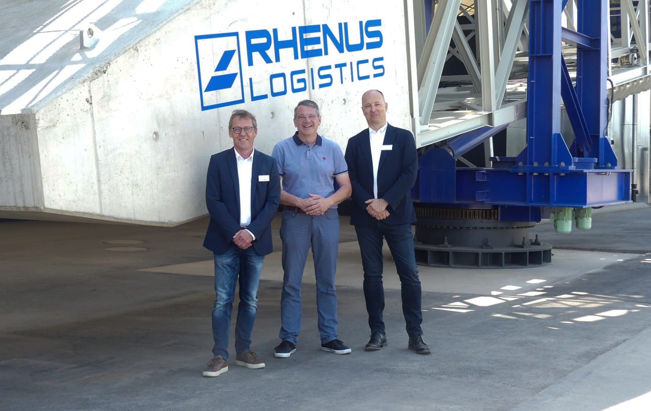 Foto: © Rhenus / Bildlegende: (v.l.n.r.): Martin Haberstock, technischer Geschäftsfeldleiter Entsorgung bei Geiger, Wolfram Britz, Oberbürgermeister von Kehl, und Uwe Veith, Geschäftsführer Rhenus Port Logistics Rhein-Neckar