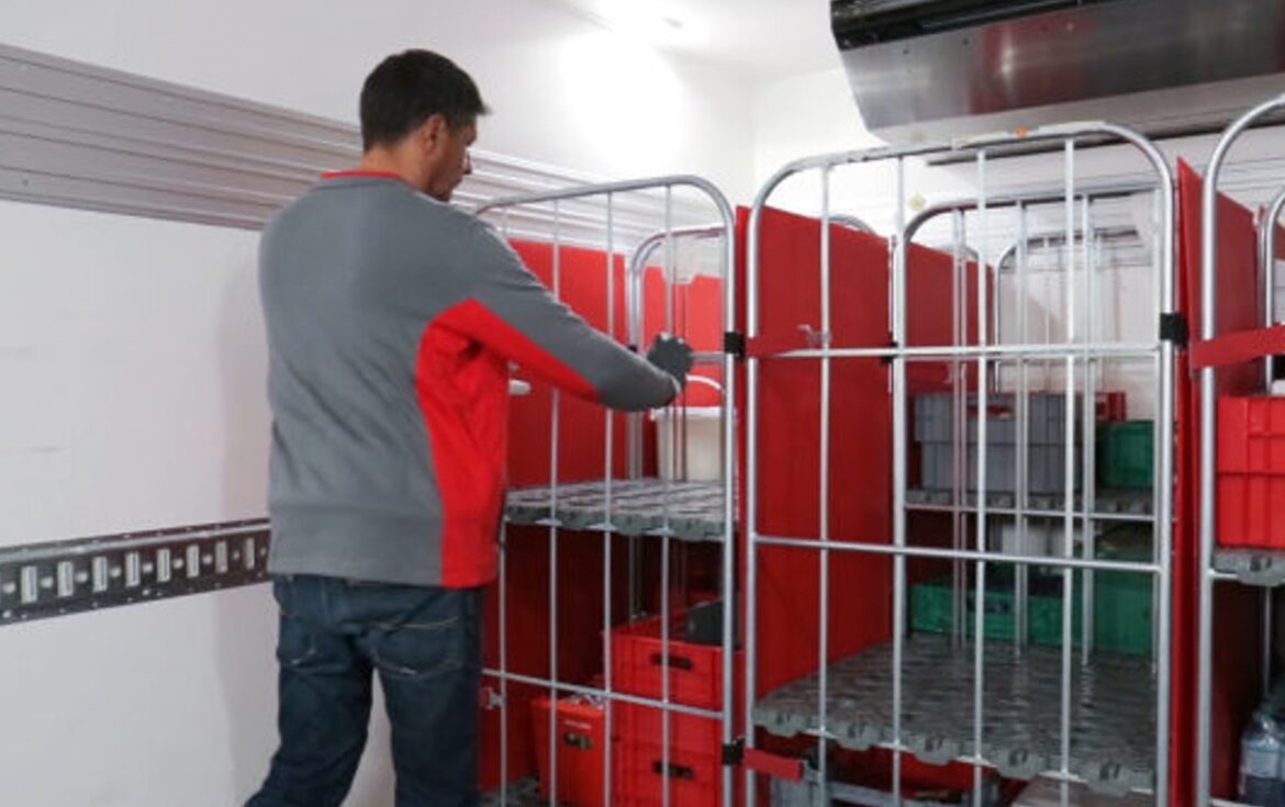 Nach einer erfolgreichen Testphase mit rund 1.600 Platten am Standort in Schwarzach (Vorarlberg) führte Transgourmet die Transportsicherung Schritt für Schritt an den einzelnen Standorten ein. Im Frühling kam der neue Gastronomiegroßmarkt in Zell am See hinzu, im Herbst 2022 der Standort Salzburg. Wenn Transportware entnommen wird, werden die Platten seitlich am Behälter angebracht, der nach dem Gebrauch wieder verschlossen werden kann. Dabei wird die Platte mithilfe von zwei Bändern an den Vertikalstreben des Roll-Containers eingehakt. „Die Vorteile sind zum einen eine hundertprozentige Sicherung der zu transportierenden Waren und zum anderen die weiterhin vorhandene Stapelbarkeit der Rollcontainer“, sagt Martin Köllner. Der RS-Systems Inhaber stand bei Transgourmet vor der Herausforderung, dass Strukturkammerplatten nicht exakt auf die Rollbehälter der Transgourmet passten. Er passte die Transportsicherung an, indem er die Platten etwas breiter und länger anfertigen ließ, um einen sicheren Transport der Ware zu garantieren.
