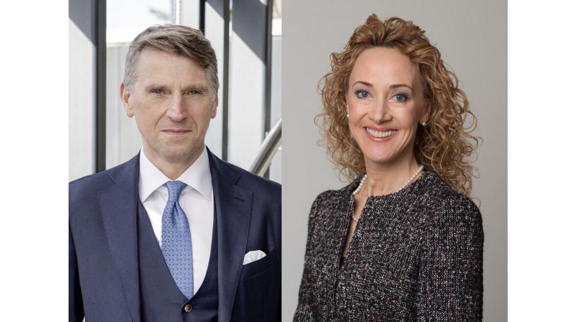 Foto: © Kühne+Nagel / Bildlegende: Lothar Harings (links) wird per 1. April 2023 von Sarah Kreienbühl (rechts) abgelöst
