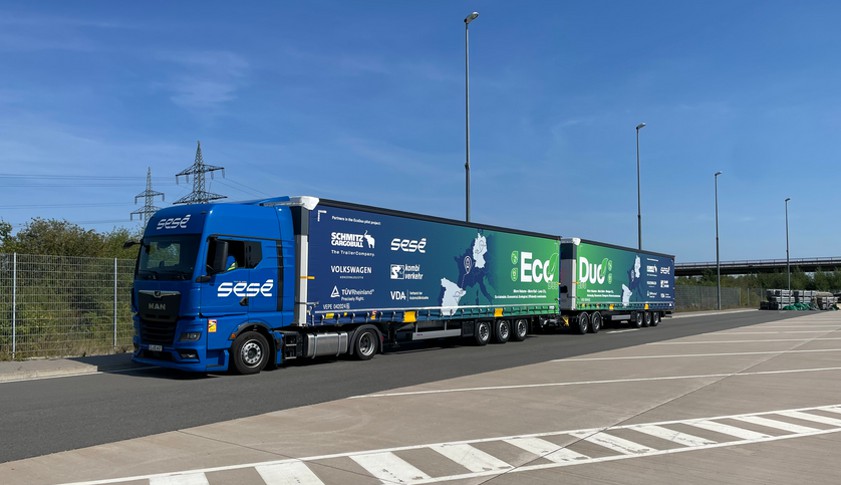 Anfang September hat ein Projektkonsortium aus deutschen und spanischen Unternehmen unter der Federführung des Verbandes der Automobilindustrie (VDA) mit der EcoDuo-Fahrzeugkombination ein einjähriges Pilotprojekt zur Optimierung des Vor- und Nachlaufs im Kombinierten Verkehr gestartet. Nach positiven Erfahrungen vergleichbarer Projekte in Spanien und Skandinavien soll das Lang-Lkw-Konzept nun auch in Deutschland getestet werden unter anderem mit dem Ziel, den CO2-Fußabdruck in der Transportkette zu verringern.