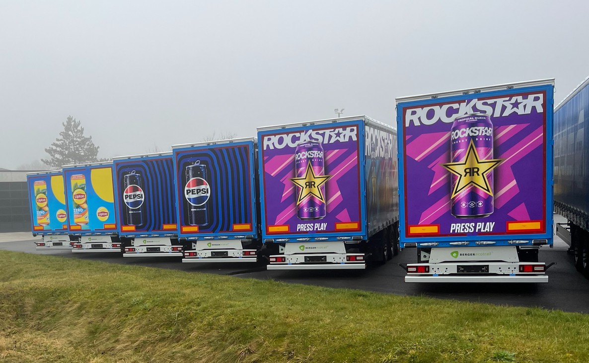 Schmitz Cargobull hat sechs Leichtbaucurtainsidern ecoCHAMP LTO von BERGERecotrail® an PepsiCo Deutschland übergeben. Bei den neuen Fahrzeugen ist der Radstand verkürzt, um die Nutzlast zu maximieren, ohne die Antriebsachse der Zugmaschine zu überlasten. Das ist besonders wichtig, wenn die Trailer mit E-Zugmaschinen oder mit voller Nutzlast im Einsatz sind.