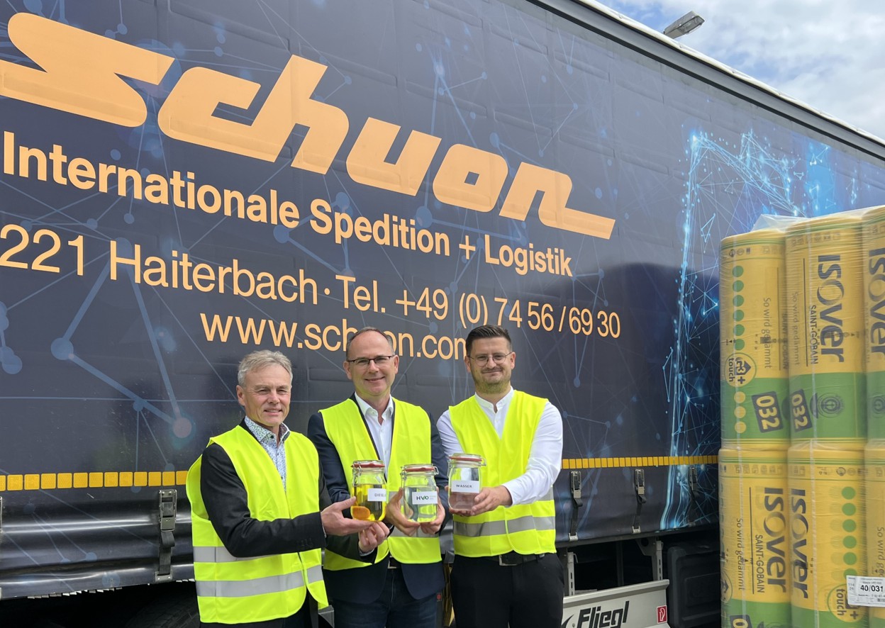Der Haiterbacher Transport- und Logistikdienstleister ist damit der erste Transportdienstleister von Saint-Gobain Isover G+H, der mit dem innovativen Kraftstoff fährt. Andres Lohmann, Leiter Einkauf Logistik DE bei Saint-Gobain, sagt: „Wir pflegen mit der Firma Schuon bereits seit Jahren eine sehr vertrauensvolle Partnerschaft. Offene Fragen wurden schnell geklärt, sodass wir binnen weniger Wochen das Projekt realisieren konnten.“ Saint-Gobain habe klare Unternehmensziele zur CO2-Reduzierung der Scope-3-Emissionen definiert. HVO100 helfe kurzfristig dabei, diesen Zielen näher zu kommen. „Wir sind überzeugt, dass diese Initiative nicht nur unserer Umweltbilanz zugutekommt, sondern auch ein positives Signal an unsere Stakeholder sendet, dass wir auch im Transportbereich aktiv an der Gestaltung einer grüneren Zukunft arbeiten“, sagt Lohmann. Zwar sei HVO100 derzeit teurer als fossiler Diesel, die Mehrkosten werden seitens Saint-Gobain nicht an die Kunden weitergegeben.