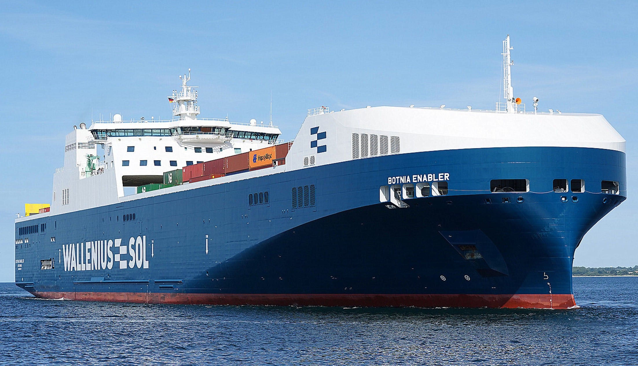 Die „Botnia Enabler“ verbindet Lübeck-Travemünde mit der Nordsee und den nordischen Ländern Finnland und Schweden. Mit einer Länge von 242 Metern kann sie 5 800 Lademeter aufnehmen. Damit ist sie deutlich größer als ihre Vorgängerinnen auf dieser Linie. Voraussichtlich Ende August bekommt sie Verstärkung: Dann wird auch ihr Schwesterschiff „Baltic Enabler“ den Dienst auf dieser Relation aufnehmen.