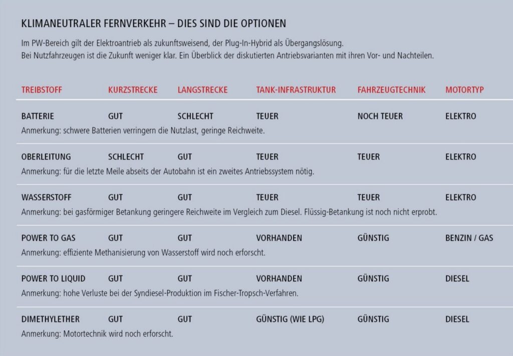 Die Chemikalie Dimethylether (DME) wird im Massstab von mehreren zehntausend Tonnen jährlich hergestellt. Der Stoff steckt als Treibgas in Spraydosen und ist Bestandteil von Kältemitteln in Kühlanlagen. Daneben ist DME als Zwischenprodukt in der chemischen Industrie weit verbreitet. Sein Vorteil: Es lässt sich kostengünstig und fast verlustfrei aus Methanol herstellen, dies wiederum ist mit Strom aus Solar- und Windenergie günstig darstellbar. DME bietet also die Chance, Lastwagen CO2-neutral fahren zu lassen.