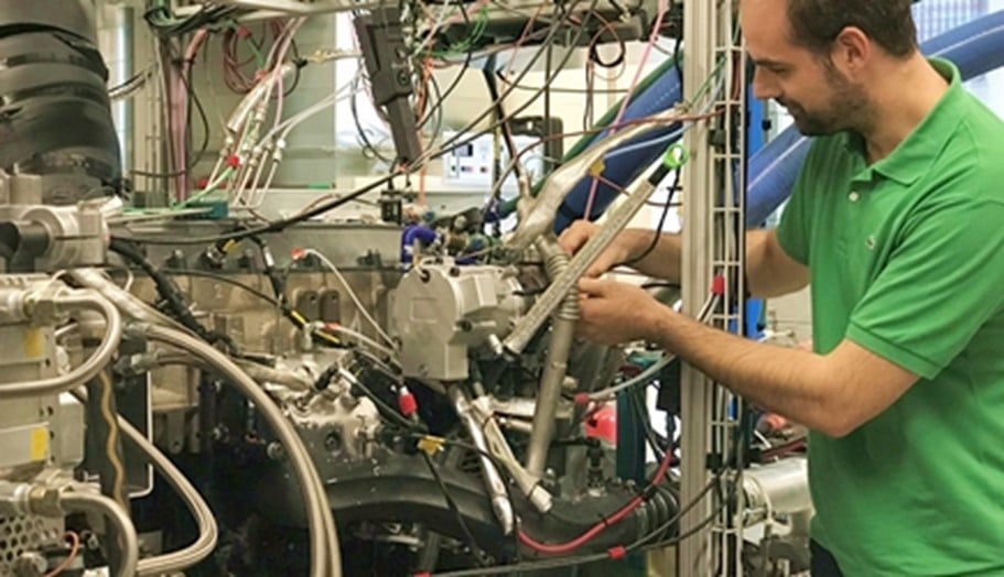 «Wir kennen diesen Motor schon sehr gut», sagt Projektleiter Patrik Soltic. «Der Motorblock stammt von einem Cursor 11-Nutzfahrzeugmotor des Herstellers FPT Industrial und dient uns bereits seit fünf Jahren für diverse Forschungsprojekte. In den vergangenen Monaten haben wir ihn zusammen mit unserem Partner FPT auf DME umgerüstet.» Das war nicht ganz einfach: Das leichtflüchtige DME besitzt im Gegensatz zu Dieseltreibstoff praktisch keine Schmiereigenschaften, was vor allem die Hochdruckpumpe des Common-Rail-Einspritzsystems rasch zerstört hätte.