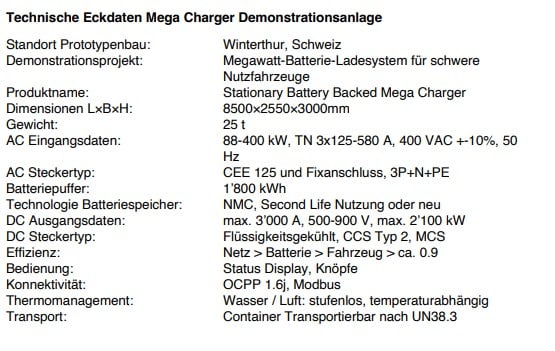 Die Designwerk Technologies AG mit Sitz in Winterthur baut eine neuartige Ladestation der Megawatt-Klasse. Sie soll das Schnellladen von E-LKW innerhalb von 45 Minuten ermöglichen. Das partnerschaftliche Demonstrationsprojekt will damit E-LKW langstreckentauglich machen und Netze entlasten. Technische Grundlage ist ein neuer Ladestandard für schwere Nutzfahrzeuge.