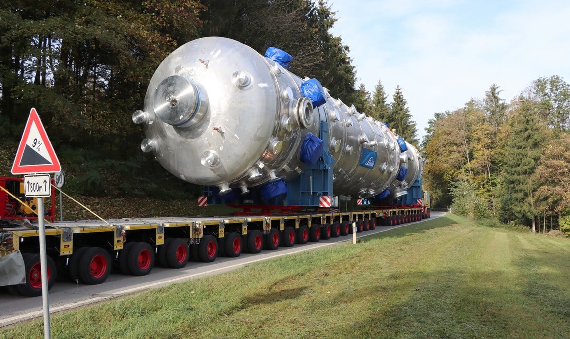 Der Transport der beiden spiralgewickelten Wärmetauscher mit ihrem Gewicht von 274 t und 278 t musste aus Sicherheitsgründen am Tag durchgeführt werden. Aufgrund der immensen Abmessungen der beiden Fahrzeugkombinationen war es erforderlich, dass sich der Konvoi vorwiegend über Nebenstraßen bewegte. Zum Einsatz kamen dabei für den 274 t Wärmetauscher ein Nachläuferzug bestehend aus 18 +10 Achslinien vom Typ THP/SL-L. Dieser brachte es auf eine Länge von 69 m und ein Gesamtgewicht von 433 t.