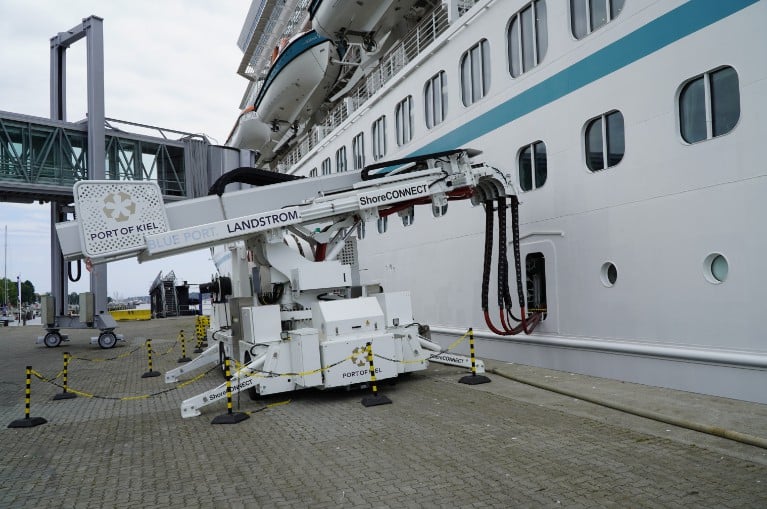 Die ARTANIA hat am Donnerstag während ihrer Liegezeit insgesamt 20.000 kWh Strom bezogen. Das Kreuzfahrtschiff wird von der Landstromanlage am Ostseekai mit 6,6 kV/60 Hz versorgt. Die Landstromversorgung von Schiffen im Hafen ist ein wesentlicher Bestandteil einer nachhaltigen Transformation im Schiffsverkehr. Der PORT OF KIEL war einer der ersten Häfen in Europa, der in entsprechende Landstrominfrastruktur investiert hat. Mit der Fertigstellung zweier neuer Anlagen am Ostuferhafen sollen ab Ende 2023 statt bisher drei bis zu sechs Fähr- und Kreuzfahrtschiffe gleichzeitig mit skandinavischem Ökostrom versorgt werden können. Dafür investiert die SEEHAFEN KIEL GmbH & Co. KG 17 Mio. Euro.