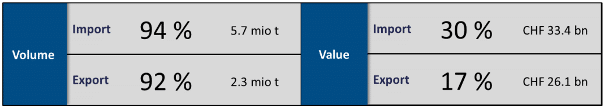Abbildung 1: Beitrag der Hochseeschifffahrt zum interkontinentalen Import und Export der Schweiz