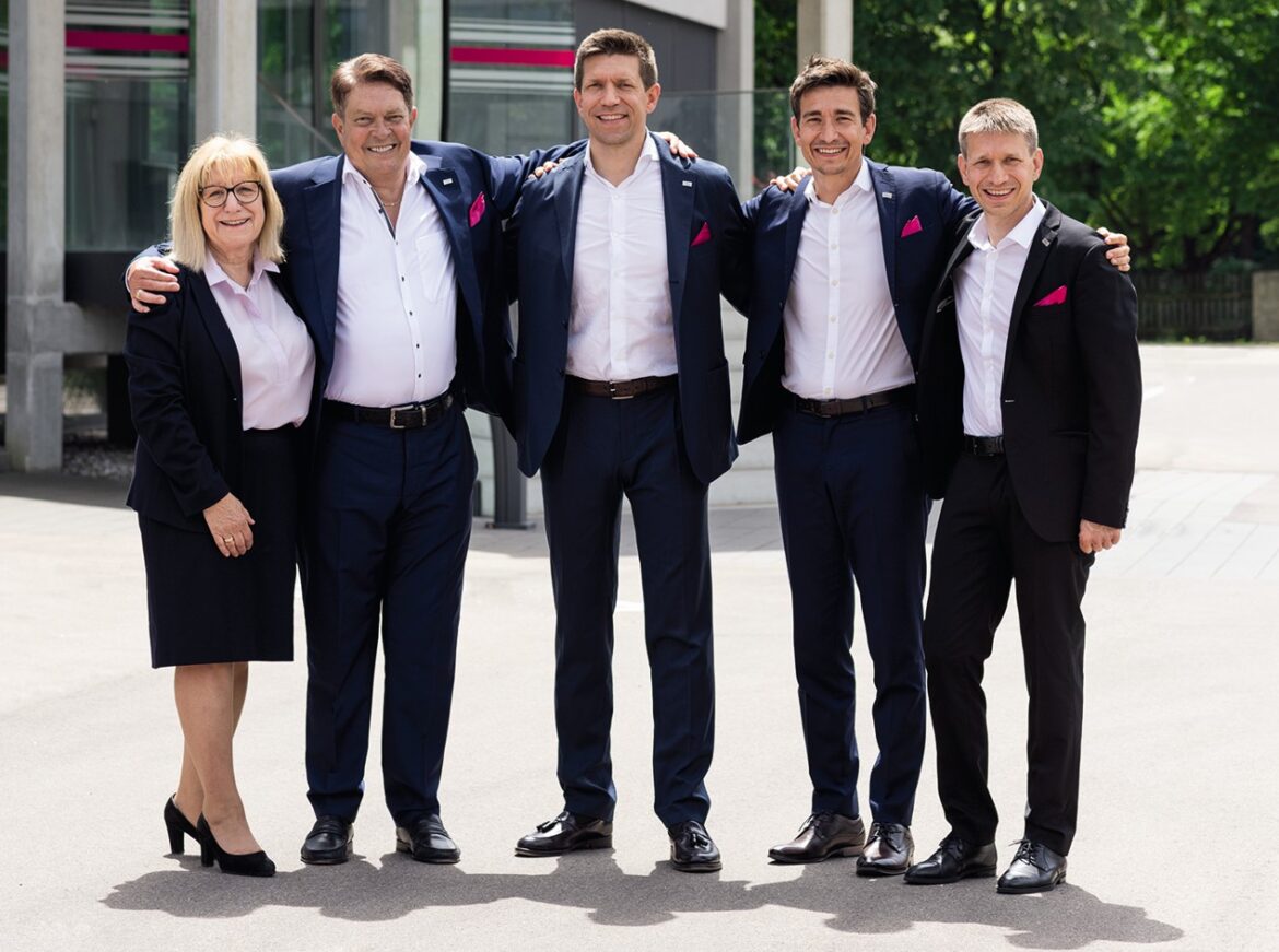 Foto: © Soloplan / Bildlegende: Die Familie Heidl bleibt langfristig Inhaber der Soloplan GmbH (v.l.n.r.): Wolfgang und Christine Heidl mit ihren Söhnen Fabian, Julian und Christian