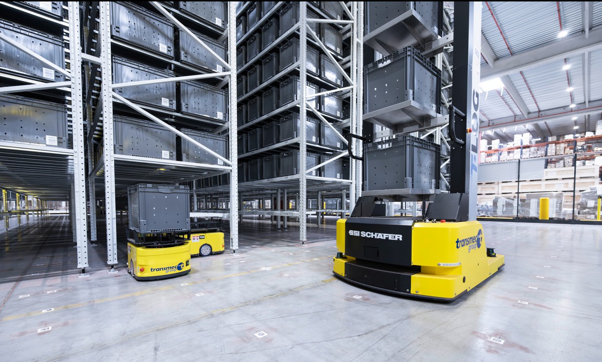 Der italienische Logistikdienstleister Transmec erhält von SSI Schäfer eine Komplettlösung, die aus exakt aufeinander abgestimmten Robotern, Regalen, Behältern, Arbeitsstationen und Software besteht. Das von SSI Schäfer als Generalunternehmer errichtete Kommissionierlager hat 13.000 Regalstellplätze, die von 15 RunBots und RackBots vollautomatisch versorgt werden. Da die mobilen Roboter als intelligenter Schwarm arbeiten, maximiert Transmec die Verfügbarkeit seines neuen Warenlagers.