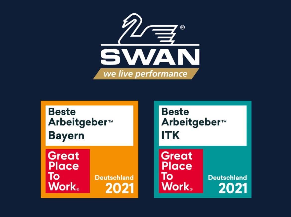 Die SWAN GmbH hat mit großem Erfolg am Great Place to Work® „Beste Arbeitgeber Wettbewerb” des gleichnamigen internationalen Forschungs- und Beratungsinstituts teilgenommen. Die SWAN ist für ihre exzellente Arbeitsplatzkultur gleich doppelt ausgezeichnet worden. Das Projekthaus für SAP-Logistik zählt zur Top-Liga der besten Arbeitgeber Bayerns sowie der besten ITK-Arbeitgeber deutschlandweit.