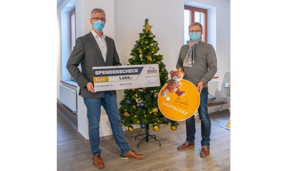 Anstelle einer gemeinsamen Weihnachtsfeier spenden die Beschäftigten der SWAN GmbH an ihren Standorten Augsburg und Nürnberg dieses Jahr für soziale Projekte. Der Augsburger Standort unterstützt die Elterninitiative krebskranker Kinder Augsburg – LICHTBLICKE e.V. mit insgesamt 1.000 Euro. Vom Nürnberger Standort gehen 500 Euro an die ökumenische Wärmestube in Nürnberg.