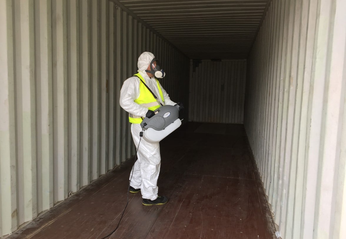 (Frenkendorf/Schweiz) Durch die Desinfektion von Containern erhalten Kunden der Swissterminal AG hygienische und gesundheitlich unbedenkliche Container, vor allem in Bezug auf das Coronavirus SARS-CoV-2 sowie auf andere Viren, Bakterien, Hefen und Pilze. Zum Einsatz kommt dabei die sogenannte Kaltvernebelung, die neueste und modernste Methode der Flächendesinfektion.