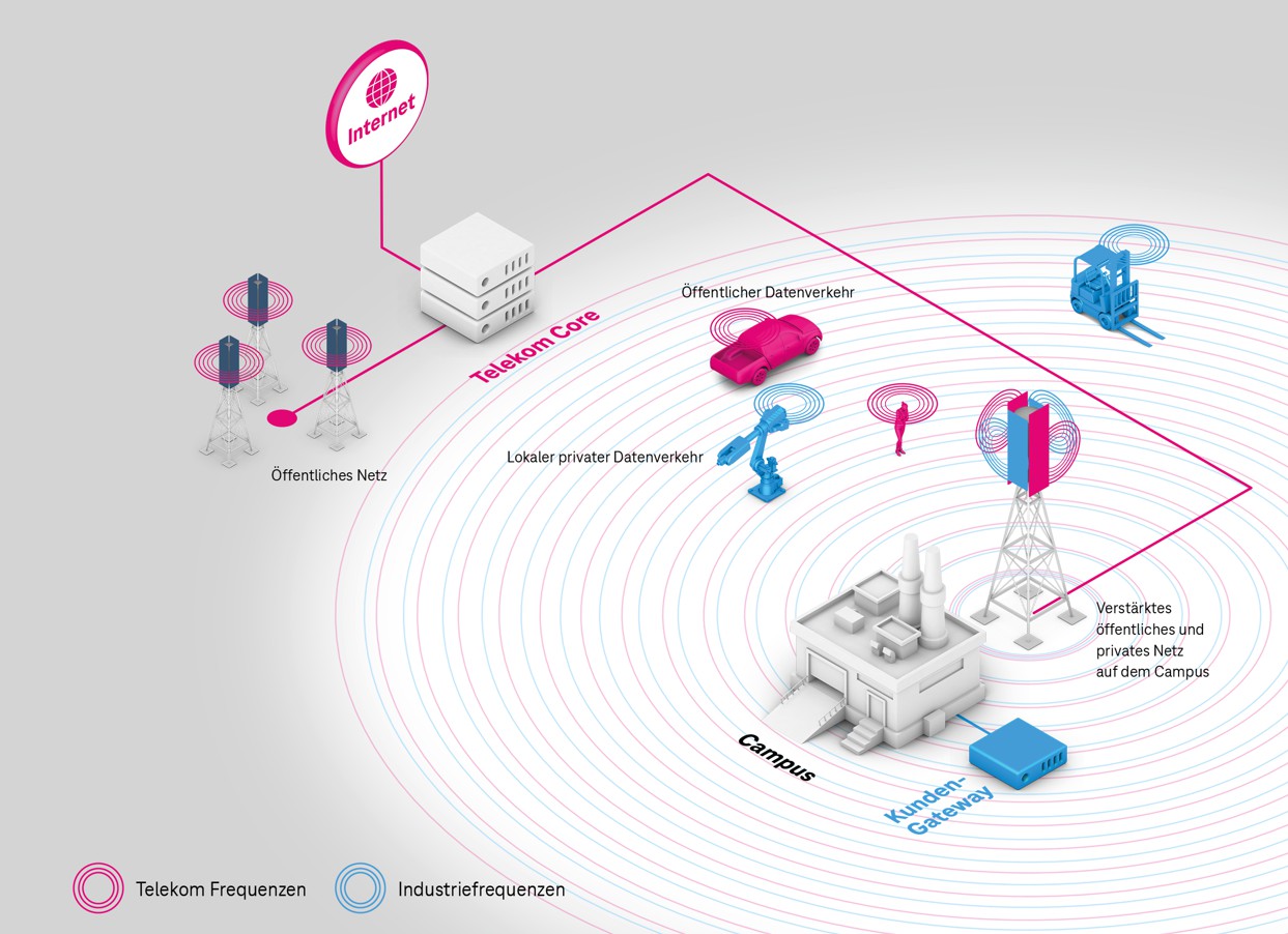 Die Telekom wird die Hafenterminals jeweils mit einem sogenannten Dual-Slice-Campus-Netz ausstatten. Dabei versorgt ein öffentliches 5G-Netz der Telekom etwa Mitarbeitende, externe Dienstleister, Zulieferbetriebe oder Kundinnen und Kunden. Das zusätzliche rein private 5G-Netz wird im lokalen 5G-Industriespektrum im Bereich 3,7 bis 3,8 GHz betrieben. Anders als beim öffentlichen 3,6 GHz-Frequenzspektrum der Telekom handelt es sich dabei um von der Bundesnetzagentur eigens für die Industrie bereitgestellte 5G-Frequenzen. Es bietet exklusive zugesicherte Netzressourcen für EUROGATEs internen Datenverkehr. Über diesen Teil des Netzes laufen Daten getrennt und gänzlich unbeeinflusst vom öffentlichen 5G-Datenverkehr. So stehen EUROGATE im Grunde zwei 5G-Frequenzbänder und insgesamt rund 190 MHz Bandbreite zur Verfügung.