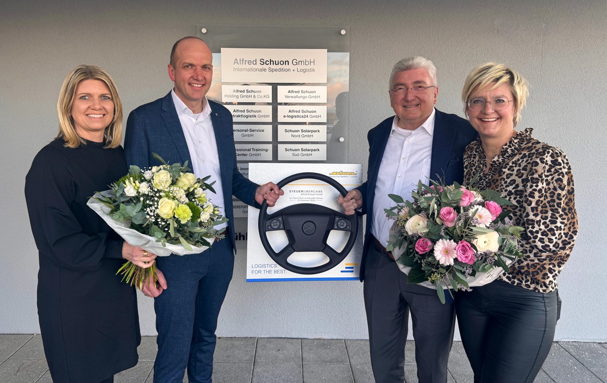 Mehr Verantwortung für die dritte Generation der Familie Schuon: Theo Schuon überträgt seine Anteile an der Alfred Schuon Spedition + Logistik Unternehmensgruppe an seine Töchter Sandra Grimm und Bianca Kuppetz sowie seinen Sohn Alexander Schuon, dem als Mehrheitseigner eine größere Führungsverantwortung zuteilwird.