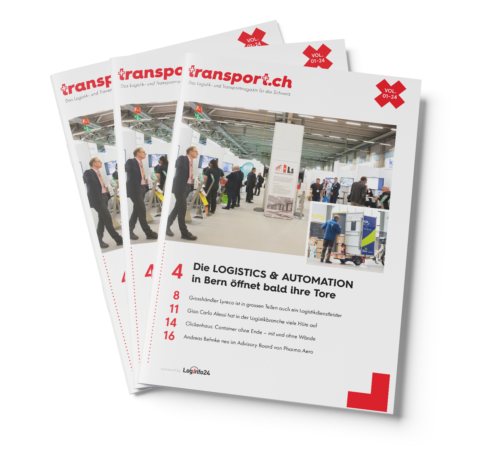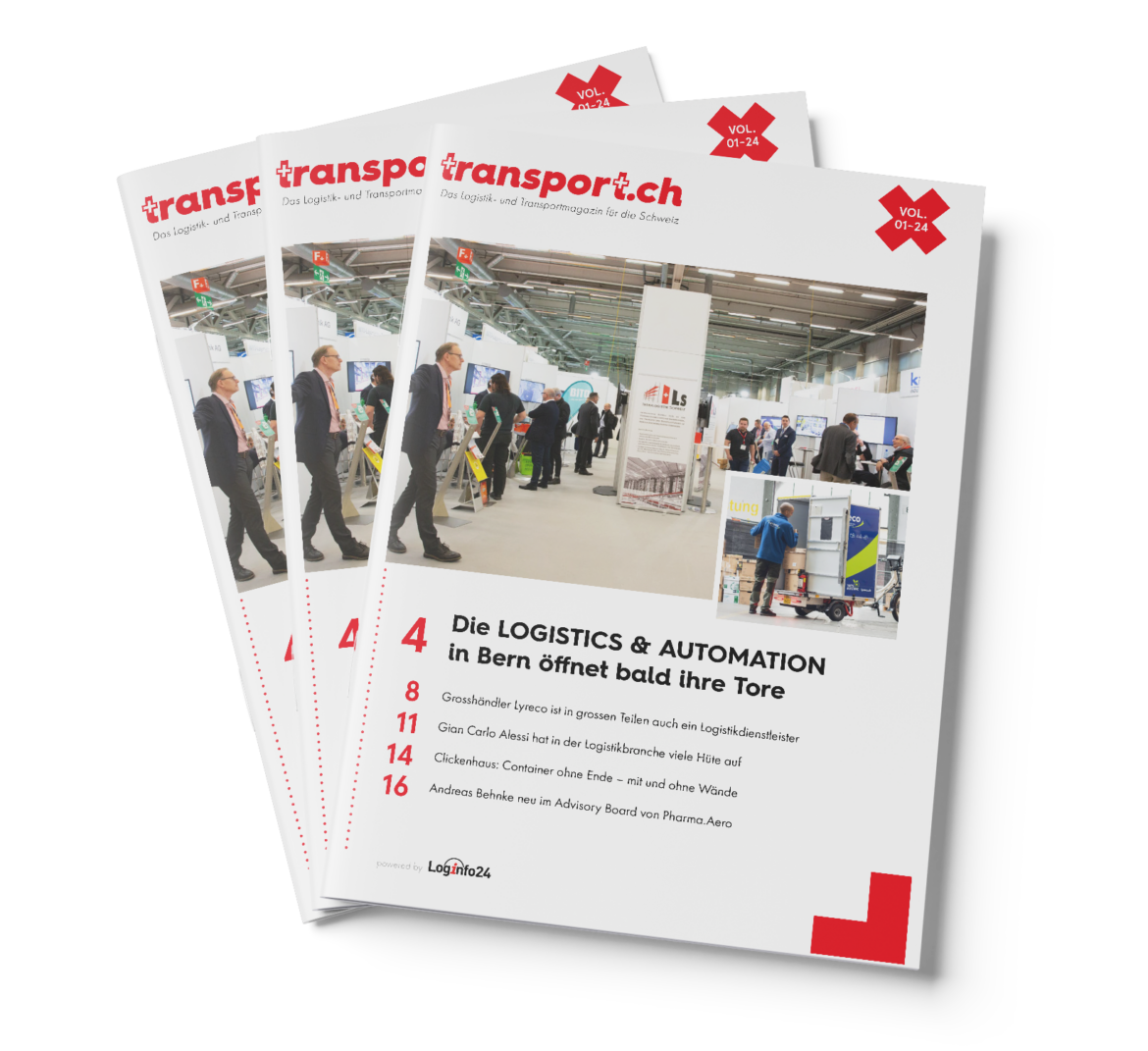 transport.ch – Das Logistik- und Transportmagazin für die Schweiz – Ausgabe 1/24 ist online. Im neuen Magazin gibt es eine Vorschau auf die LOGISTICS & AUTOMATION, einen Bericht über die Lyreco Switzerland und über die Clickenhaus AG sowie je ein Interview mit Gian Carlo Alessi von Lamprecht Pharma Logistics und Andreas Behnke von Swissport als Advisory Board bei Pharma.Aero.