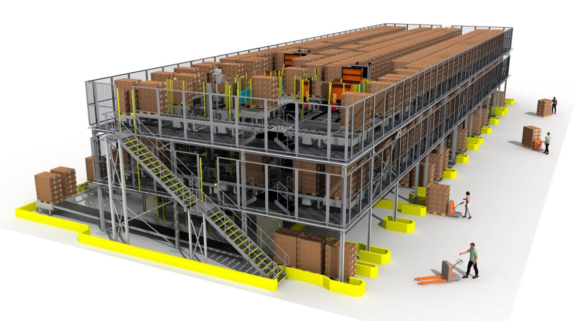 Das automatisierte Puffer- und Sequenzierungssystem wurde auf einer rund 700 Quadratmeter großen Zwischengeschossstruktur installiert. Es erstreckt sich über zwei Ebenen, um den verfügbaren Platz optimal auszunutzen. Auf einer Ebene werden die Paletten vorbereitet und gepuffert, anschließend werden sie mithilfe eines Aufzugs und Transferwagens auf die andere Ebene in den Versandbereich überführt. Dies ermöglicht dem System die Verarbeitung von bis zu 150 Paletten pro Stunde und gleichzeitig die Sequenzierung von bis zu 460 Paletten.