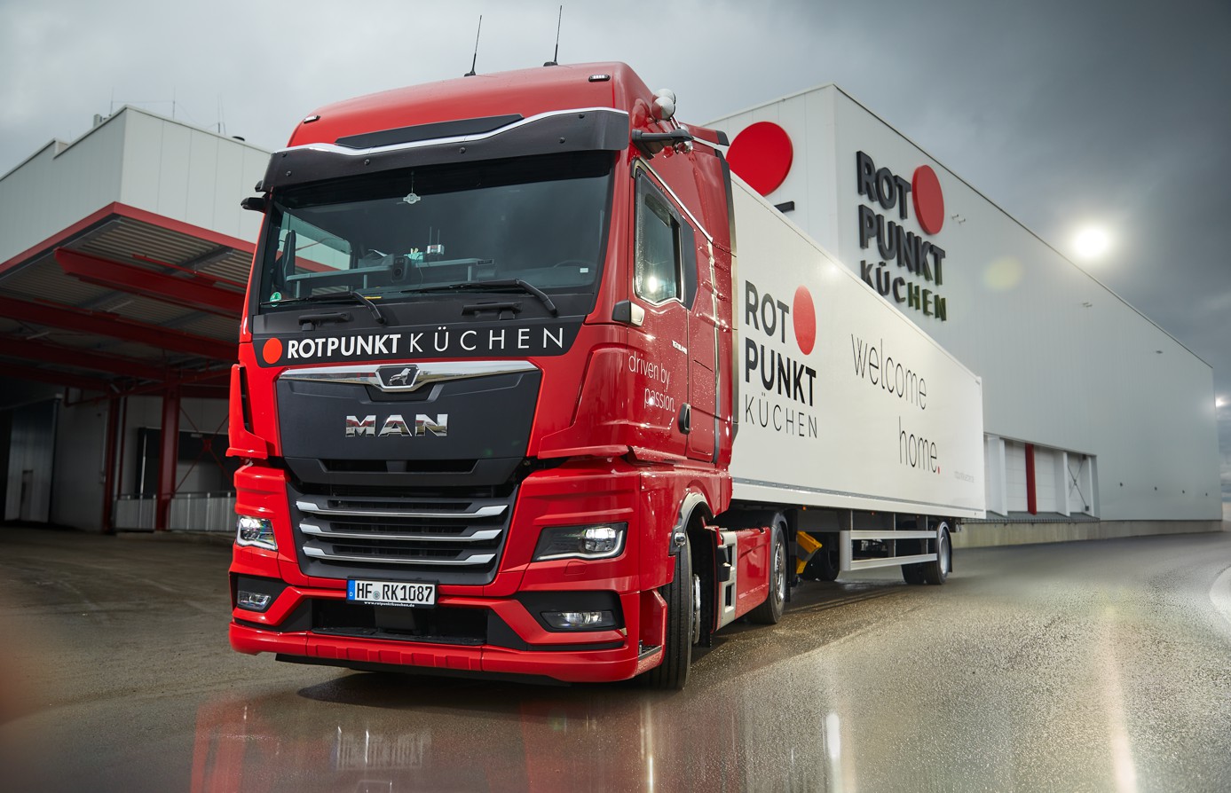 Die Spanplatten werden in Melle täglich angeliefert und bedarfsweise von der Produktionslogistik des Küchenherstellers abgerufen. Von Melle aus werden sie entweder direkt zu Rotpunkt oder zu einem der Konfektionäre transportiert, bei denen die Platten zugeschnitten und mit Kanten versehen werden.