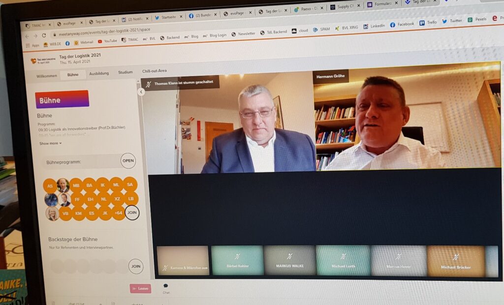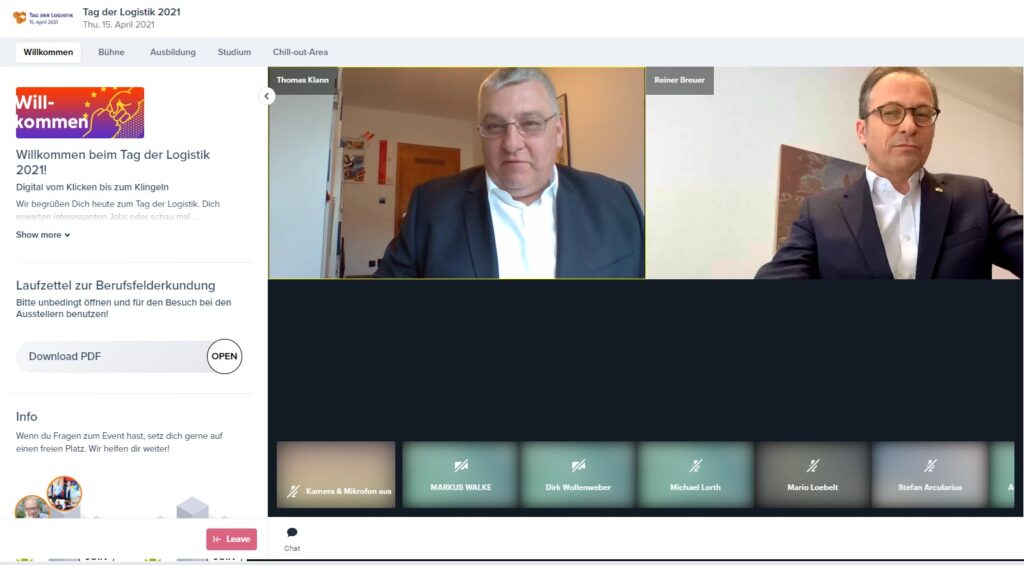 Einige Highlights von vielen: Rund 400 Schüler besuchten die digitale Berufserkundung des MIT-Rhein Kreis Neuss „Vom Klicken bis zum Klingeln“ und hörten unter anderem Grußworte von Reiner Breuer, Bürgermeister der Stadt Neuss, und von Hermann Gröhe, Mitglied des Deutschen Bundestages und ehemaliger Bundesgesundheitsminister. Ingram Micro führte virtuell durch ein Fashion-Logistikzentrum für den E-Commerce und zeigte, was passieren muss, damit die neue Klamotte schon in ein bis zwei Tagen geliefert wird. Vier von 15 Amazon-Standorten in Deutschland beteiligten sich in einem gemeinsamen Online-Event mit einer kurzweiligen Reise durch die Amazon-Welt – vom Wareneingang über die Pick- und Packstationen zum Scannen und Adressieren bis hin zur Verladung auf die LKWs. LH Cargo gewährte einen Blick hinter die Kulissen der Impfstofflogistik in Frankfurt.