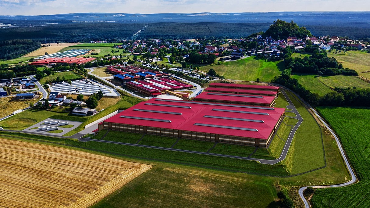 Foto: © Drone-Pics.de / Bildlegende: Zusätzliche 120.000 m2 Fertigungskapazitäten sind in rekordverdächtiger Zeit in Parkstein entstanden.