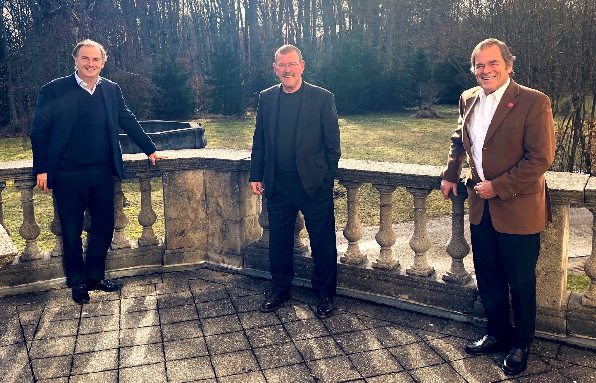 Foto: © trans-o-flex / Bildlegende: Die beiden trans-o-flex-Gesellschafter Peter Amberger (rechts) und Christoph Schoeller (links) haben den Vertrag mit CEO Wolfgang P. Albeck bis 2024 verlängert.