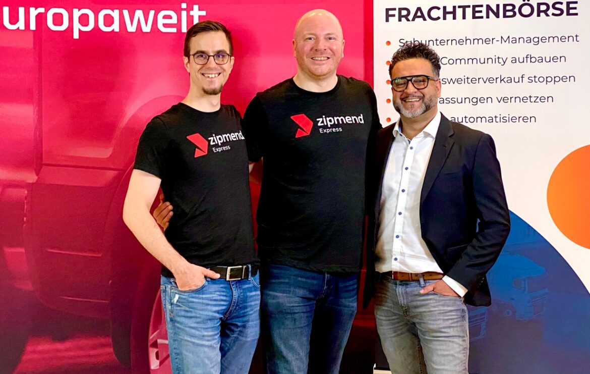 Foto: © Trans.eu / Bildlegende (v.l.n.r.): Benjamin Pencarski, Timm Trede (beide zipmend) und Bijan Hakami (Trans.eu) feiern die neue Zusammenarbeit