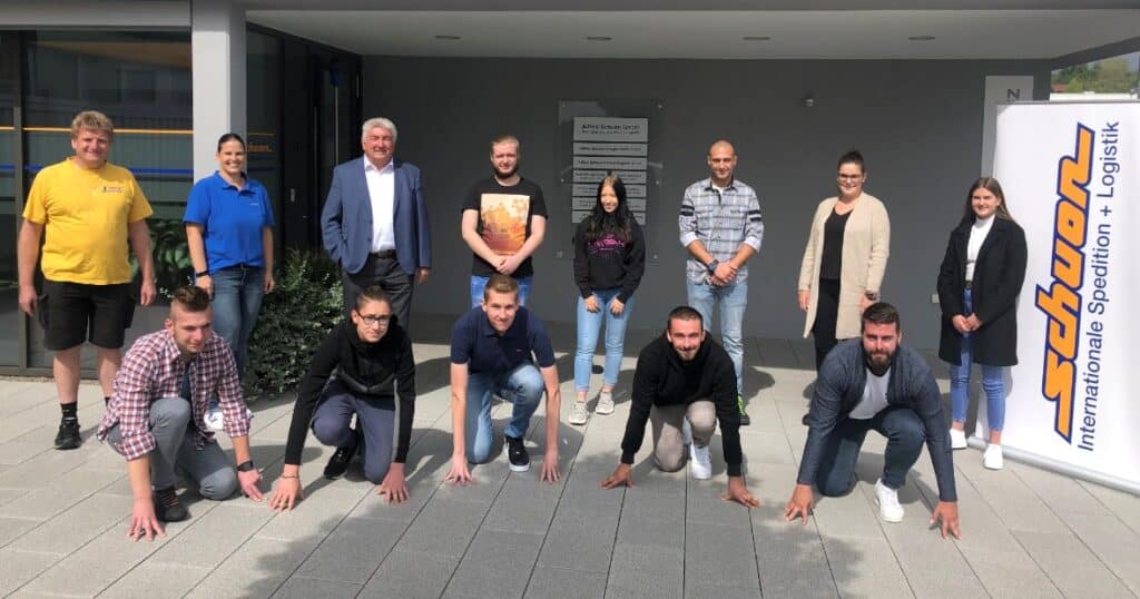 (Haiterbach) Die Alfred Schuon GmbH hat heute neun Auszubildende sowie einen dualen Studenten in ihren Reihen begrüßt. Zehn Fachkräfte wachsen bei dem Familienunternehmen mit Hauptsitz in Haiterbach nun heran: ein Kaufmann für Büromanagement, zwei Kauffrauen für Spedition und Logistikdienstleistung, zwei Fachkräfte für Lagerlogistik, zwei Berufskraftfahrer und ein Kfz-Mechatroniker. Zudem bildet Schuon einen dualen Studenten im Fach BWL mit Schwerpunkt Spedition, Transport und Logistik sowie einen Azubi aus, der im prämierten 2plus2-Modell sowohl eine Lehre zum Fachlageristen als auch zum Berufskraftfahrer absolviert. Wegen des Coronavirus mussten in diesem Jahr besondere Vorkehrungen getroffen werden.